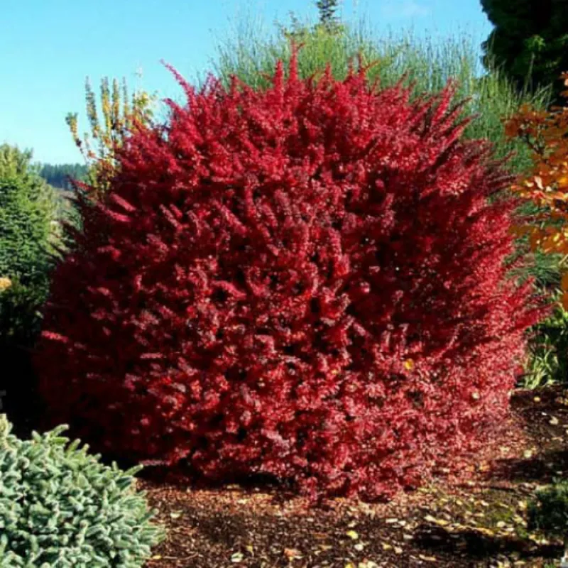 Форма: розкидистий колючий листяний чагарник. Висота дорослої рослини - до 2,5 м, діаметр крони до 3 м. Швидкість зростання: приріст в рік близько 15 см. Вид квітів: цвіте в кінці травня - початку червня, квітки жовто-червоні. Квітки жовті, дрібні, зібрані в кисті або пучки по 2-5 шт. Листя: листя овальне, довжиною до трьох см, влітку - фіолетово-червоні з жовтою облямівкою, восени - фарбуються в насичено-червоні тони. Плоди: коралово-червоні, еліптичні, діаметром до 10 см. Дозрівають у вересні-жовтні і тримаються до зими.