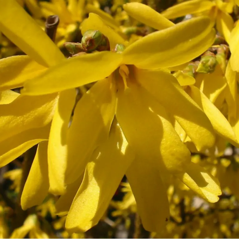 Форзиція проміжна Линвуд (лат. Forsythia x intermedia "Lynwood") Форма: Крона широкоокруглой, симетрична, щільна зі злегка никнуть пагонами. Розмір / швидкість росту: Річний приріст у висоту 25-35см, в ширину 20-30см. Цвітіння: Цвіте в квітні-травні. Квітки темно-жовті, розпускаються навесні до появи листя, цвітіння рясне. Плід коричнева коробочка. Листя: Листя яйцевидно-ланцетні, зелені, довго тримаються на гілках, восени світло-жовті. Умови вирощування: Світлолюбна, виносить легку полутень.Растёт на всіх типах садових грунтів, віддає перевагу свіжим, родючі, досить вологі почви.Зімостойка. У сильні морози може підмерзати, але швидко восстанавлівается.Переносіт стрижку. Використання в дизайні: Рослина - символізує початок весни. Викликає масу емоцій після затяжної нудної зими, тому що цвіте раніше більшості декоративних рослин в Україні. Ефектно виглядає в одиночних посадках на газонах, може використовуватися для створення живоплотів. Добре поєднується з строкатими хвойними.