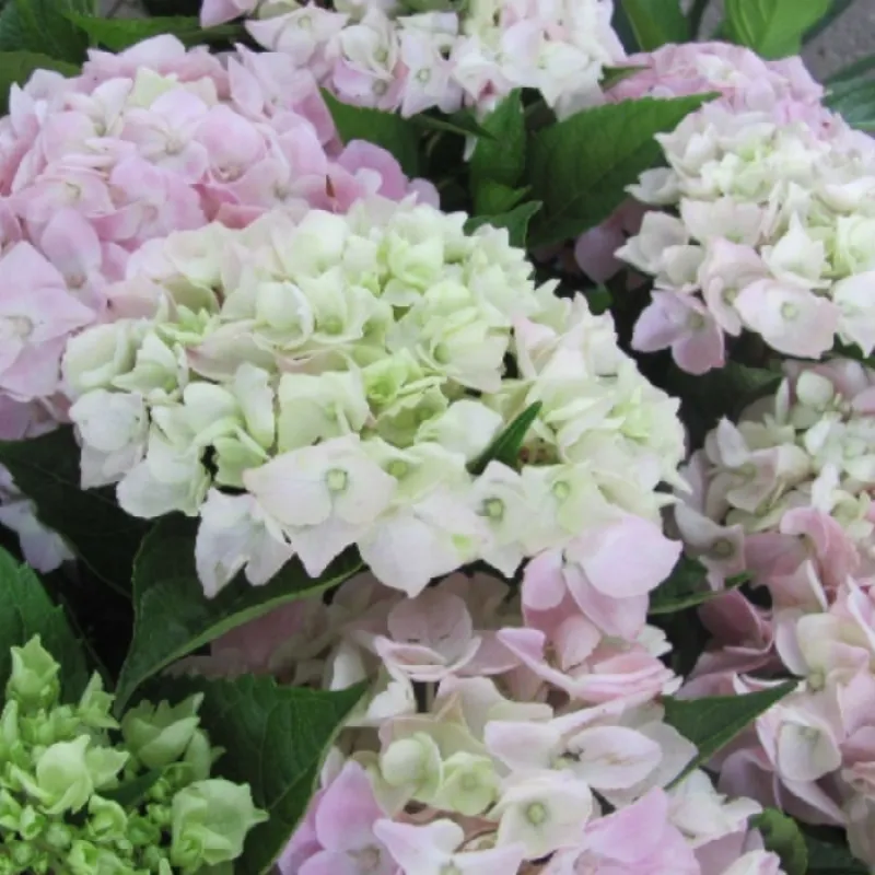 Гортензія крупнолиста Енконг (лат. Hydrangea macrophylla Ankong) Висота / ширина: Висота 1,2 м до 1,5 м; ширина 1,2 м до 1,5 м. Час цвітіння: Період цвітіння з липня по вересень. Забарвлення квітки: Про т світло - рожевого до рожевого у вапняній грунті і фіолетовий, світло - блакитний до синього в кислому ґрунті. Місце і грунт: Болісно реагує на пересихання грунту. Грунт любить пухку, вологу і кислу (рН 5), багату органікою. Віддає перевагу рости на сонці (не прямим промені) і в тіні. Особливості: Гортензія крупнолистная зазвичай не переносить морозів нижче -15 С, тому її варто або вирощувати в горщику, або вкривати. Використання в дизайні: Використовують у висадці в садах і з огляду на довгий період цвітіння - вирізають для квіткових букетів.