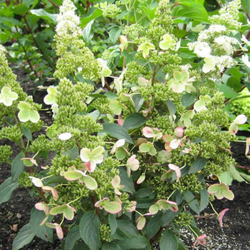 Опис: красивий кущ, висотою і шириною 100-150 см. Час цвітіння: Цвіте рясно в липні-вересні на пагонах поточного року. Забарвлення квітки: Квітки біло-кремові, восени зеленувато-рожеві, зібрані в щільно набиті, великі суцвіття, довжиною до 30 см.