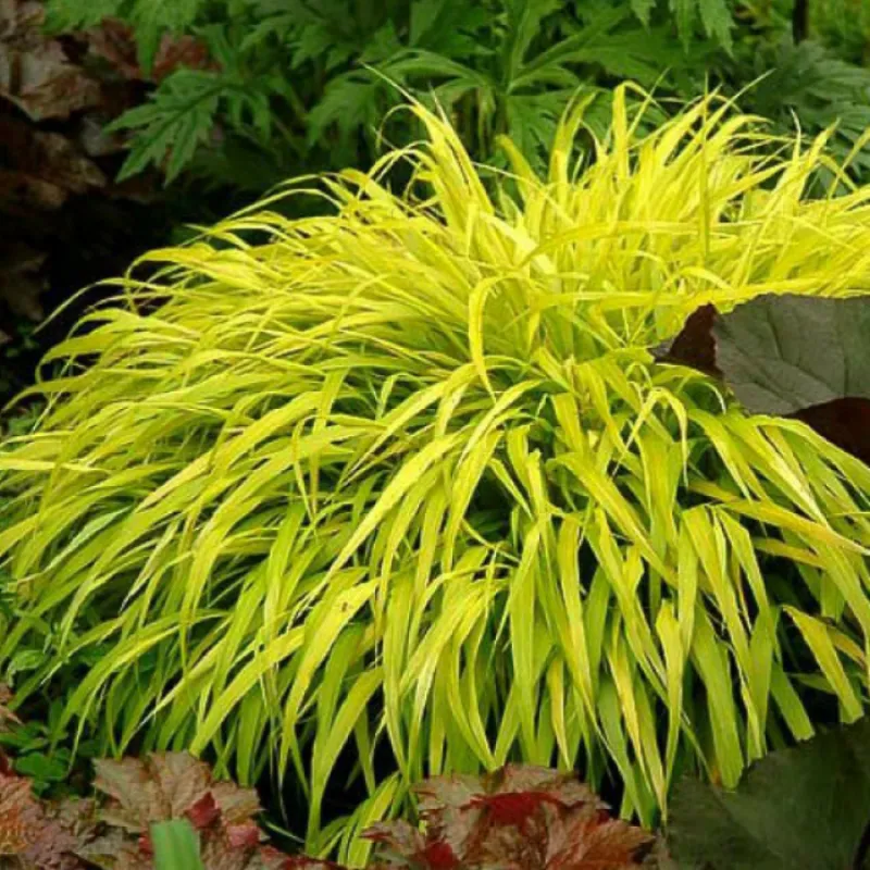 Хаконехлоа Олл Голд (лат. Hakonechloa macra 'All Gold') Опис: однодольні багаторічна трав'яниста рослина родини злакових. Хаконехлоя один з найкрасивіших видів декоративних трав, а також один з небагатьох, що вважають за краще тінисті місця. Високо цінується за свої декоративні якості, оскільки володіє привабливою фактурою і золотисто-жовтим кольором листя. Зростає повільно. Листя: Високо цінується за свої декоративні якості, оскільки володіє привабливою фактурою і золотисто-жовтим кольором листя. Хаконехлоа Олл Голд посадка і догляд Умови вирощування: Хаконехлоя велика воліє багату родючий грунт з pH від помірного до кислого 6,0-7,0. Вона не буде щаслива ні у важкій вологому грунті, ні в сухому піщаному. Щоб надати допомогу рослині в адаптації, регулярно поливайте його хоча б протягом першого року. За умови наявності здорової, багатої органічними речовинами грунту, додаткова підгодівля не потрібна. Використання в дизайні: Дуже добре виглядає в якості низькою огорожі, завдяки своїм довгим, вузьким листям, зростаючим вниз, японська лісова трава All Gold виглядає акуратно і привабливо.