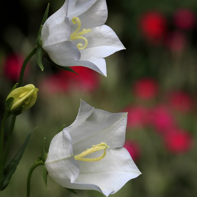 Дзвіночок Опис: кущистий, вертикально зростаючий багаторічник, висотою до 80 см при діаметрі до 30 см. Володіє облиственим стеблом з черговими, узколінейнимі або ланцетними, блискучими листям темно-зеленого кольору і розеткою прикореневого листя . Квіти: Квітки в коротких гронах, злегка пониклі, великі, чашоподібні, блідо фіолетового кольору. Час цвітіння: Цвіте в червні-липні. Дзвіночок персиколистий Грандіфлора Альба посадка і догляд Умови вирощування: Розмножується дзвіночок персиколистий діленням куща і насінням. Посадка рекомендується на сонці і в місцях з легкою тінню. Невимогливий до ґрунтів, росте на будь-яких окультурених, пухких, добре дренованих. Переносить посуху, зимостійкий. Використання в дизайні: Висаджується групами, в кам'янистих садах і міксбордерах, в поєднанні з півоніями, дельфініум, злаками та іншими світлолюбними багаторічними рослинами. Дзвіночок персиколистий грандифлора підходить для зрізання.