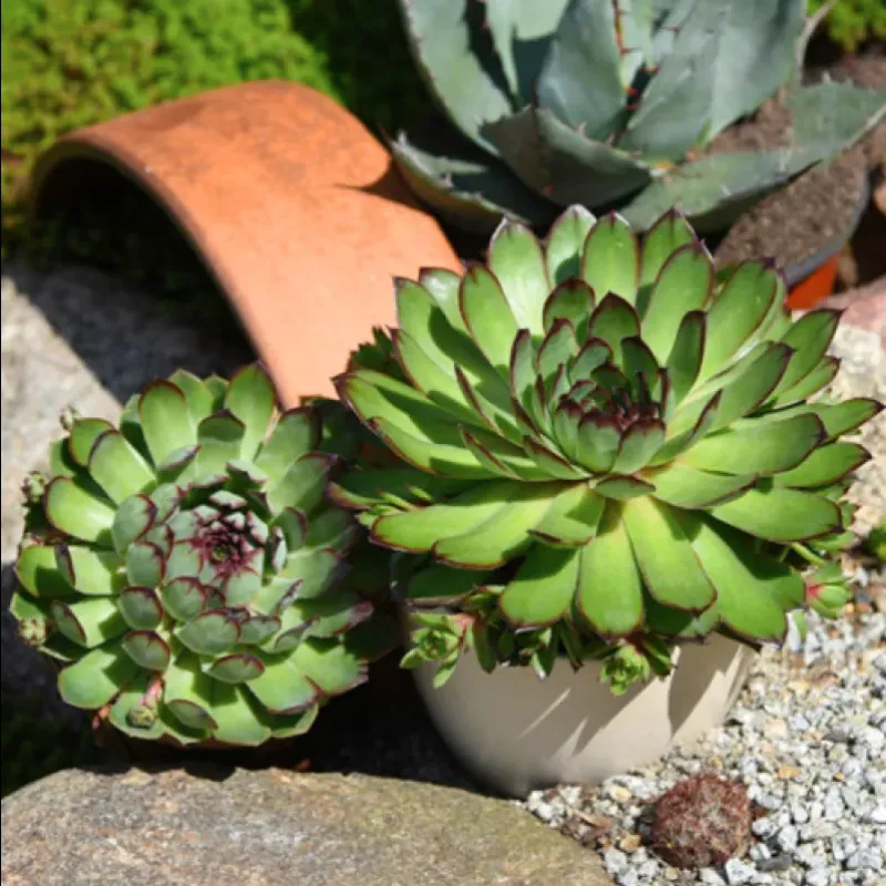 Молодило 'БігСем Хром Грін' - це дуже ефектний сукулент, вічнозелена рослина.