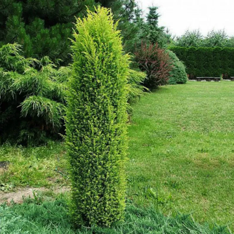 Форма: Вічнозелений чагарник висотою до 4м з колоноподібною, строго вертикальною, багатостовбуровою, щільною, колоновидною формою крони. У віці 10 років досягає 2 м висоти. Розмір: швидкозростаючий. Річний приріст у висоту 10-15 см, завширшки 5 см. Хвоя сіро-зеленого кольору, колюча.