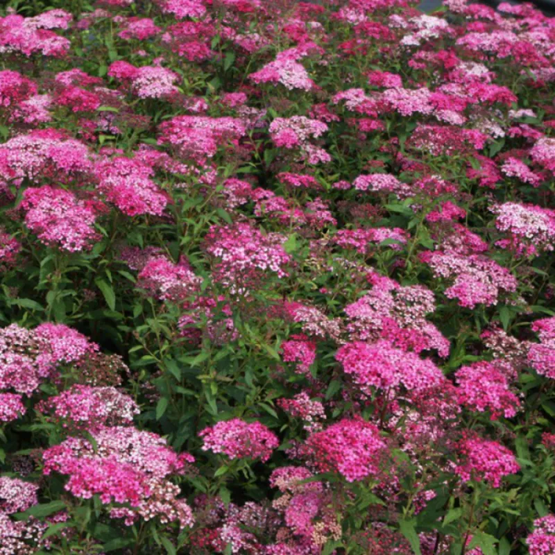 Опис: Невисокий компактний чагарник до 0,8 м заввишки і діаметром з вертикально зростаючими втечами, іноді схиляються. Квітки: Цвіте рясно в літній період великими суцвіттями, що складаються з темно-рожевих дрібних квіток, на кінцях пагонів поточного року, тому для рясного цвітіння рекомендована весняна обрізка. Цвітіння рясне і тривале. Листя: Листя еліптичні загострені, зазубрені по краях, жовтіють до осені.
