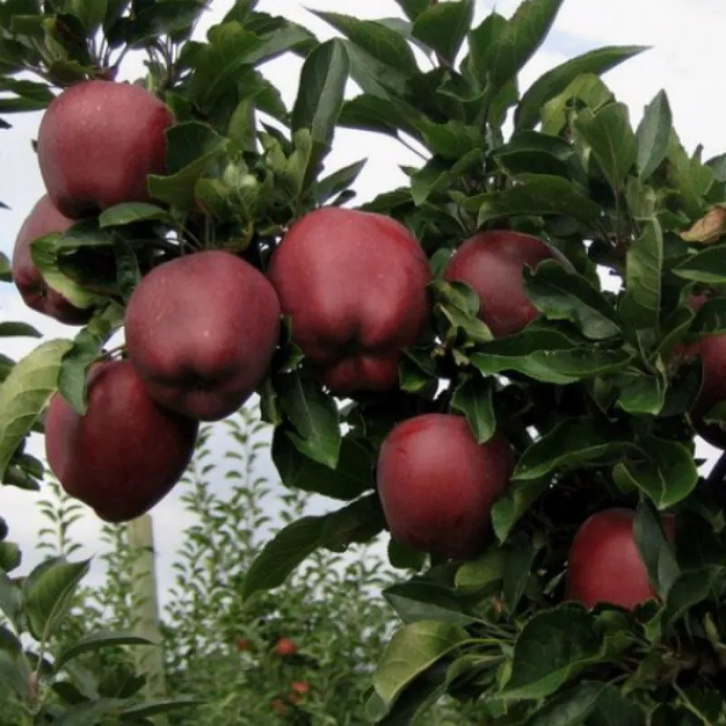 Опис: яблуня 'Ред Чіф' - новий пізньозимовий сорт. Відноситься до родини Делішес. Це сорт кольчаточного типу плодоношення з високою скороплідністю - плодоношення починається на третій рік після посадки. Також характеризується тривалим терміном зберігання плодів (7-8 місяців). Початок плодоношення: на 3 рік. Термін дозрівання: третя декада вересня. Урожайність: з дорослого дерева можна отримати 90-100 кг. Опис плоду: у плодів основне забарвлення зеленувато-жовте, покривне - спочатку смугастий, червоний, виражений рум'янець, ближче до дозрівання - яскраво-червоний щільний, захоплюючий весь плід. Поверхня вкрита густим, напівпрозорим восковим нальотом. М'якуш світло-кремовий, малосоковитий, щільний, кислувато-солодкий, трохи пріснуватий, з приємним і сильним сортовим ароматом. Середня маса плодів - 180-200 г, транспортабельність відмінна.