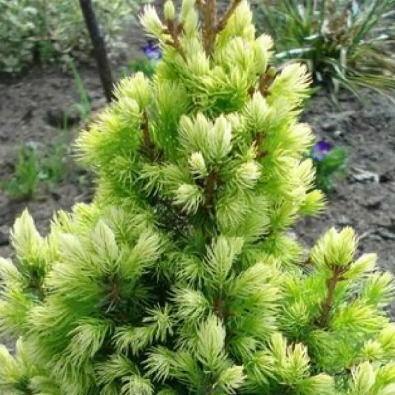Ялина канадська Дейзі Уайт (лат. Picea glauca Daisy's White) Опис: ялина з конусоподібної формою крони, дуже нагадує ялина канадську Коніка (Conica). Хвоя яскраво-зелена м'яка. Особливо Picea glauca Daisy White буває декоративна з появою нових приростів жовтувато-білого кольору в травні-червні, пізніше прирости зеленіють. Швидкість зростання: Зростає ялина «Дейзі уайт» досить повільно, досягає 80 сантиметрів у висоту лише до десятирічного віку. Досягає 2-3 м. Висоти. Умови вирощування: Світлолюбна, але переносить легку півтінь. Любить вологу і родючий грунт, легко-або среднесуглинистая. Верхній шар грунту повинен бути добре проникним, щоб коріння отримували необхідну кількість повітряного харчування. Погано переносить сухість, перезволоження і ущільнення грунту. Погано переносить забруднення повітря. Обрізка: Має гарну рівну і симетричну крону, тому не потребує обрізку. Але можна застосовувати формувальні обрізку - спіраль, помпони або кулі. Використання в дизайні: ефектно виглядає в партері, композиціях, міксбордерах, альпінаріях, біля будинків, в групових і одиночних посадках, а також для декорування кам'янистих садів, даху або тераси в контейнерах. Добре виглядає на задньому фоні і гармонійно поєднується з іншими низькорослими хвойними. У контейнерах широко використовується в якості Новорічного дерева.