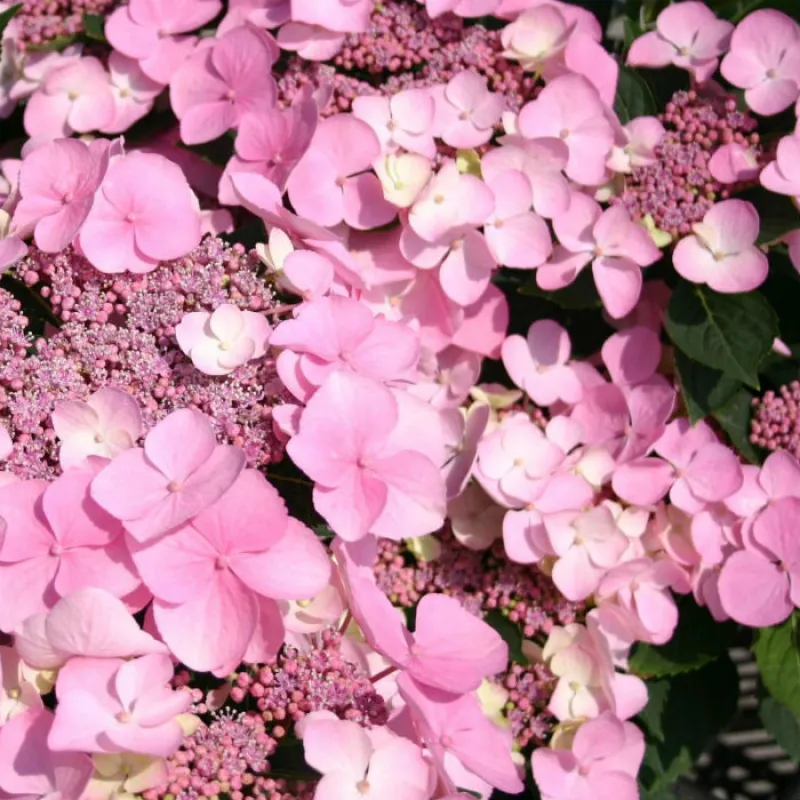 Гортензія крупнолиста Мариес Перфекта (лат. Hydrangea macrophylla Mariesii Perfecta) Висота / ширина: Висота куща 120 см, ширина 120-150 см. Час цвітіння: З кінця червня по початок вересня. Забарвлення квітки: Кожне суцвіття забарвлене в кольори від блідо-лілово-синього до світло-рожевого, залежно від кислотності грунту. Місце і грунт: Свіжі, вологі, добре дренованих, родючі, гумусні грунту, від кислих до нейтральних, уникає вапна. Грунт не повинна бути занадто поживною, інакше рослина постраждає від пізніх заморозків. Використання в дизайні: Використання їх в саду додає особливу декоративність - пишність, яскравість, індивідуальність саду. Кущі гортензії чудово виглядають і в саду, і в групах, і в солітерних посадках. Навіть якщо ви ніколи не займалися квітникарством, ви не могли не звертати уваги на такі яскраві і красиві квіти, як гортензія. Їх пишні суцвіття привертають увагу не гірше троянд, а колірна гамма дуже обширна і прикрасить будь-який сад або квітник.