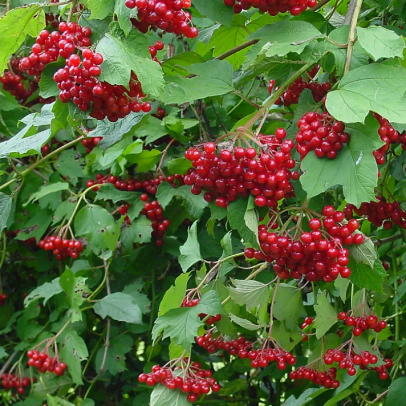 Калина звичайна (лат. Viburnum opulus) Форма / розмір: Високий гіллястий кущ або невелике листопадне дерево висотою 2-4 м з сірувато-бурою корою. Пагони голі, рідше ребристі, зеленуваті, інколи з червонуватим відтінком. Калина є швидкозростаючим деревцем. Її річний приріст сягає 30-40 см. Доживає калина до п'ятдесятирічного віку. Листя: Листки супротивні до 10 см завдовжки. Платівка їх 3-5 лопатева з серцеподібною підставою, зверху темно-зелена, гола, з нижньої - сірувато-зелена, по жилах слабоопушена, з двома ниткоподібними прилистками і двома дисковидними сидячими залозками, черешки довгі. Цвітіння: Запашні квітки зібрані в плоскі щитовидні суцвіття на верхівках молодих пагонів. Крайові квітки великі, безплідні, серединні - дрібніші, двостатеві. Чашечка з п'ятьма зубчиками, віночок (до 5 мм в діаметрі) пятіраздельний, тичинок п'ять, маточка одна, стовпчик короткий, зав'язь нижня. Квітки білі або рожево-білі. Цвіте калина з кінця травня до липня, плоди дозрівають в серпні-вересні. Плоди: плоди - ягодообразние червоні, овальні кістянки (6,5-14 мм завдовжки і 4,5-12 мм в ширину), що містять забарвлену червоним соком плоску тверду кісточку. Умови вирощування: Місце для посадки цього чагарнику слід вибирати на периферії ділянки, в самій зниженою його частини. Як правило, тут - по краях і в затишних куточках земельного наділу - добрива в грунт потрапляють рідко і нерегулярно, земля не вапном, присутній фактор часткового затінення. Саме це і потрібно калині. Використання в дизайні: Калину можна використовувати практично у всіх видах посадок. Хороша вона і в групах, і як солітер. Ефектно виглядати буде і на схилі, і у водойми, і безпосередньо під вікном будинку або біля ганку. Існує думка, що найбільш виграшним фоном для калини є групи таких рослин як липа, ялина, клен, береза або горобина.