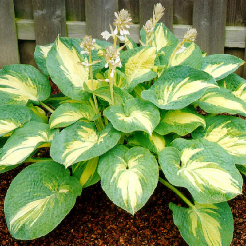 Хоста Грейт Експектейшнc (лат. Hosta Great Expectations) Опис: Одна з найкрасивіших і найбажаніших хост в саду. Висота куща 55 см, ширина куща до 85 см. Листя: Листя крупного розміру, закруглені, серцеподібної форми, зморшкуваті. Вони змінюють свій колір на протязі сезону: від насиченого синього кольору до синьо-зеленого забарвлення зі світло-жовтим центром і блакитною облямівкою. Розмір листа - близько 22 см в довжину і 20 см в ширину. Квіти: В середині літа з'являються безлисті рівні квітконоси з кистевидними суцвіттями. Квітки в них численні, схожі на дзвіночки. Забарвлення квіток - молочно-біла. Час цвітіння: Липень-серпень. Умови вирощування: Невибаглива і універсальна. Вона краще себе почуває в напівтіні. Віддає перевагу кислі суглинні грунту. Морозостійкість висока - він витримує до -29 ° С. Використання в дизайні: Підходить для одиночних і масових посадок міксбордерах, бордюрах, під кронами дерев. Не любить тісноти.