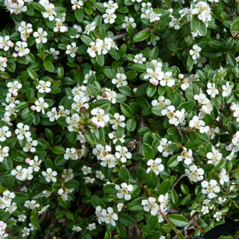 Кизильник гібридний Корал Б'юті (лат. Cotoneaster х suecicus Coral Beauty) Форма / розмір: Низькорослий чагарник, гілки якого дугоподібно розпростерті над землею. Досягає 0,5 м вис. і в кілька разів ширше. Листя: вічнозелені, блискучі, темно-зелені. Квітки / плоди: білі, VI. Яскраво-червоні плоди залишаються на рослині до весни. Умови вирощування: Зимостійкий, невимогливий до грунтів, підходять будь-які садові субстрати; добре переносить обрізку і стрижку. Місце - сонце, тінь, півтінь. Використання в дизайні: Ідеальне почвопокровноє рослина для підпірних стінок, укосів, рабаток.