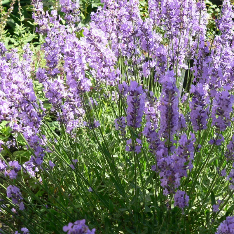Лаванда вузьколиста Дварф Блю (лат. Lavandula angustifolia Dwarf Blue) Опис: Лаванда вузьколиста "Дварф Блю" - красива рослина з ніжною світло фіолетовим забарвленням і тонким свіжим ароматом, який ні кого не залишить байдужим. Розмір: Висота дорослої рослини: 40 см. Діаметр крони дорослої рослини: 40 см Квітки: Вічнозелений чагарник, що відрізняється світлою, сизувато-сірого листям, і квітами дуже ніжною, світло-фіолетового забарвлення. Володіє приємним і сильним ароматом. Час цвітіння: Тривале і рясне цвітіння з червня по серпень. Лаванда вузьколиста Дварф Блю посадка і догляд Умови вирощування: Лаванду слід вирощувати на сонячних місцях, в перші роки після посадки бажано невелике укриття на зиму. Любить легкі вапняні грунту, помірний і регулярний полив. Використання в дизайні: Підходить для низьких обрамляють огорож, альпійських гірок, сонячних квітників і низьких бордюрів.