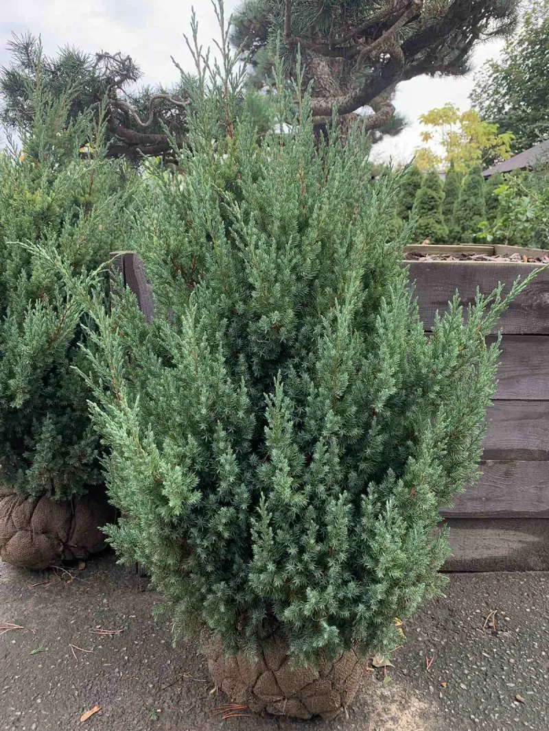 Форма: густий, конічний, повільнозростаючий сорт ялівцю. Пагони ростуть вертикально. Швидкість зростання: у віці 10 років досягає 2 м зростання. Досягає до 2,5 м у висоту і 1,5 м в діаметрі, зростає повільно: по 0,2 м в рік. Живе до 100 років. Хвоя: блакитно-зелена хвоя голчаста, колюча, взимку сіро-блакитного кольору.