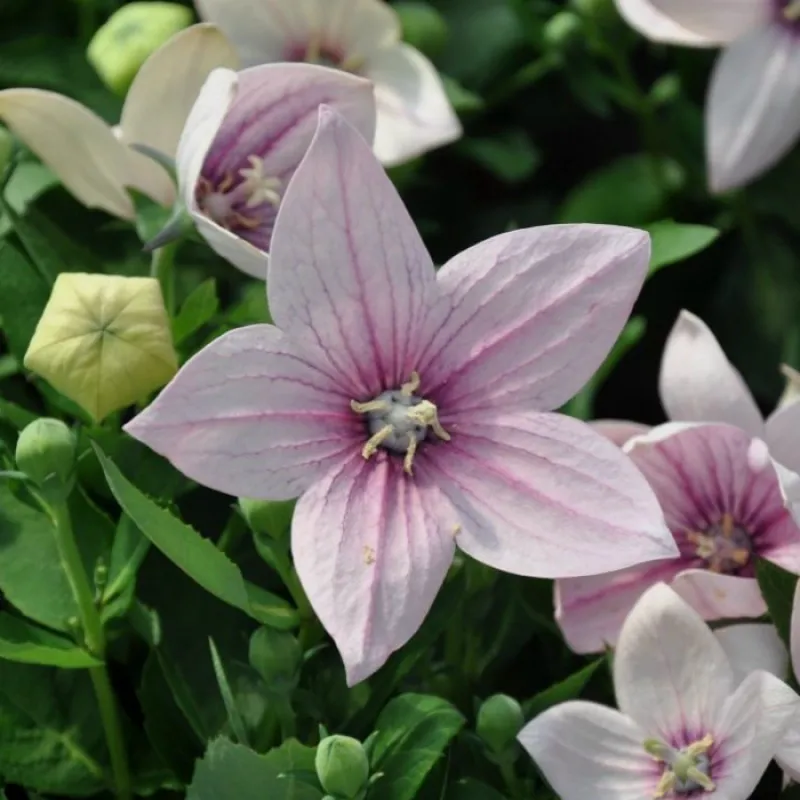 Платикодон Астра Пінк (лат. PLATYCODON Astra Pink) Опис: Справжній багаторічна рослина, і, якщо у Вас вийде вибрати відповідне для нього місце, він здатний прикрашати ваш квітник довгі роки. Серед низькорослих платикодон є найбільш популярними. Він відрізняється компактними розмірами, близько 20 см у висоту. Листя: Листя сизо-зелені, гладкі, восени жовто-багряні, служать прикрасою клумби до заморозків. Квітки: Квітки досить великі, широко відкриті дзвіночки і мають форму зірки. Вони схожі скоріше не на дзвіночок, а на чашу. Шірококолокольчік гарний вже в бутонах - великих, як китайські ліхтарики. Пелюстки квітки є досить товстими, через що період цвітіння рослини досить тривалий і становить близько 60 днів. Дорослий багатостебловий кущ цвіте з липня і майже до кінця серпня. Платикодон Астра Пінк посадка і догляд Умови вирощування: платикодон на одному місці ростуть 5-7 років без пересадки, не агресивні, добре уживаються з іншими рослинами. Сама рослина любить сонячні місця, пухку, з додаванням органіки, дренированную і помірно вологий грунт. Земля повинна бути не надто лужна. Не любить заболочених ділянок. Платикодон добре зимує під снігом, що не вимерзає. Використання в дизайні: Дуже ефектно виглядає як в групових так і одиночних посадках.