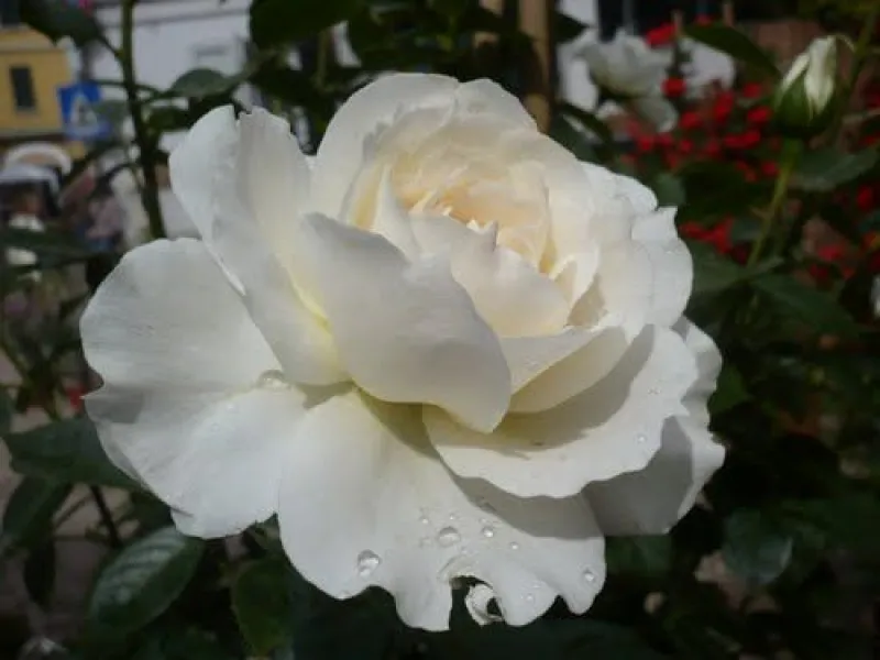 Опис: Англійська троянда, має приємний, незвичайний, квітковий аромат. Кущ акуратний, до 1 м заввишки, прямостоячий, пишний, має дрібні шипи. Листки темні, глянцеві, блискучі. Квіти ніжно-білого кольору, махрові, великі, густі, в діаметрі 8-10 см. Цвіте рясно, безперервно.
