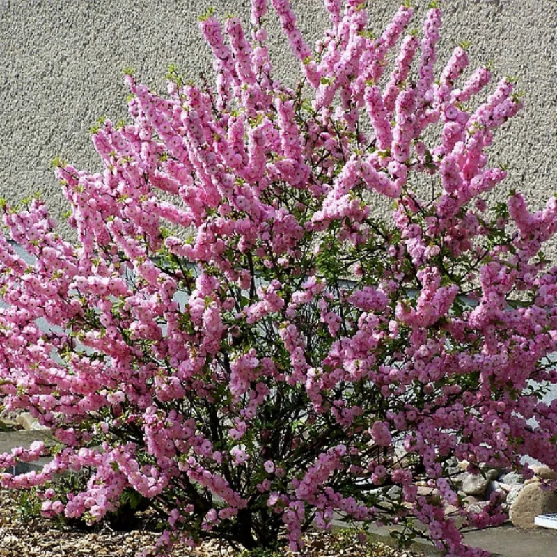 Сакура Канзай (лат. Prunus Canzan) Форма / розмір: Невисока дерево до 10 (12) м у висоту і 5-6 м в ширину. Річний приріст сягає 30 см. Висота залежить від штамба. Гілки трохи звисають, основні - міцні, спрямовані вгору. Форма крони в молодому віці - перевернутий конус, з віком стає ширшою. Листя: Еліптичні, чергові, до 8-12 см в довжину, глянцеві, змінюють забарвлення протягом сезону: навесні при розпусканні - бронзові, влітку - зелені, восени стають оранжево-жовтими. Цвітіння: Починає на 1-2 рік після посадки. Цвіте рясно, на початку травня, 1-2 тижні. Квітки махрові (до 30 пелюсток), до 6 см в діаметрі, рожевого кольору, зібрані в грона по 2-5 штук, запашні. Плоди - невеликі, розміром з горошину, чорні ягоди, гіркуватого смаку. Умови вирощування: Рекомендується висаджувати на сонячних, захищених від холодних вітрів місцях. Віддає перевагу вологу, свіжу багату поживними речовинами піщано-глинистий грунт, від нейтральної до сильно лужної. Може рости також на нормальній садовому грунті. Добре адаптується до міських умов. Не любить застою води. Проводять санітарну обрізку в період з травня по червень. Використання в дизайні: В одиночних і групових посадках. Дуже декоративне дерево.