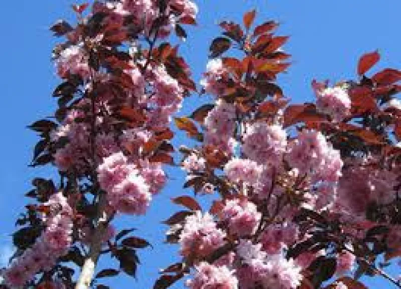 Сакура дрібнопильчата Рояль Бургунді (лат. Prunus serrulata Royal Burgundy) Форма: Має шірококонусовідную форму крони з прямостоячими, густим гіллям. Розмір: В природному середовищі вишня / сакура має форму прямостоячі густоветвистий чагарнику до 5 м. Заввишки. Кора: Сакура Роял Бургундії, в порівнянні з іншими сакурами, приваблює своєю сенсаційною гладкою корою кольору червоного дерева. Листя: Декоративні, зубчасті, загострені темно-фіолетові листя, стають помаранчевими восени. Цвітіння: Махрові, ароматні, пурпурно-рожеві квітки, 4,5-5 см., На довгих квітконіжках, зібрані в пучки по кілька штук, розташовані уздовж всієї довжини гілок. Цвіте в травні. Плоди: Їстівні, навіть смачні, злегка кислі і жорсткі, розміром дрібніші за звичайну вишню. Умови вирощування: Віддає перевагу тихі, сонячні місця. Невимоглива до грунту, віддає перевагу багаті поживними речовинами, свіжі, помірно вологі, від слабокислих до лужних. Використання в дизайні: Штамбові рослини відомі досить давно, багато хто з них мають вікову і більш історію. Штамба прикрашають патіо, позначають вхід в будинок або веранду, встановлюють в центрі мощених майданчиків. Рекомендується для малих садів і змішаних композицій. Чудово виглядають сакури на штамбі в топіарних садах, алейних посадках. Сакура на штамбі прекрасно підходить для озеленення парків і садів в одиночних і групових посадках, в якості солітера.