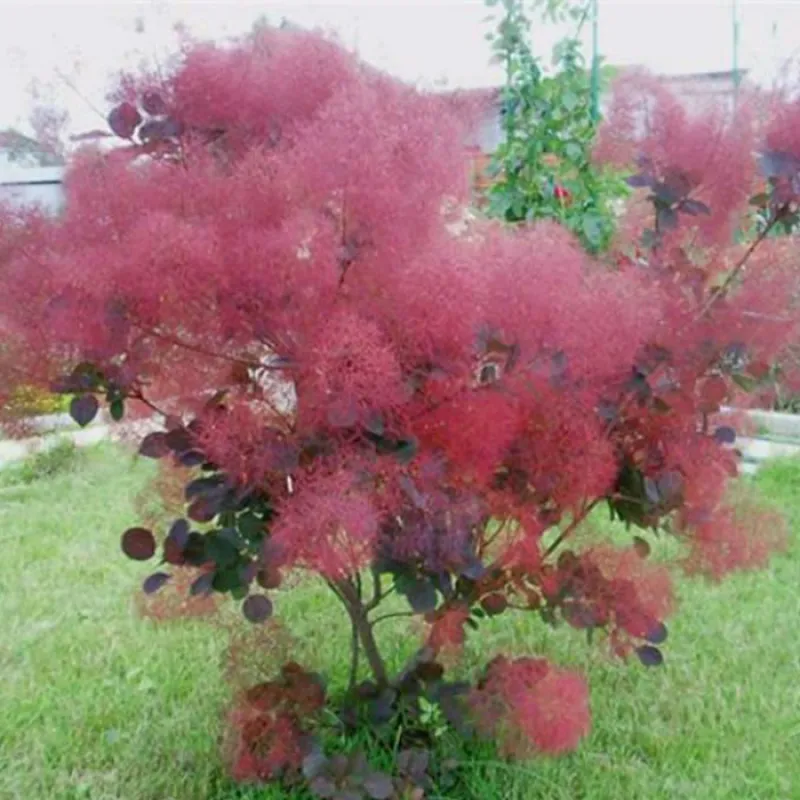 Скумпія шкіряста Роял Кармазин (лат. Cotinus coggygria Royal Purple) Форма / розмір: Компактний, широко-овальний чагарник. Висота дорослої рослини 1.5 м. Діаметр крони дорослої рослини 1.5 м. Листя: Листя яйцеподібні, темно-червоно-червоні. Квітки: Квітки дрібні рожеві, в волотистих ажурних суцвіттях, цвітіння тривале з червня, під час плодоношення плодоніжки подовжується і покриваються довгими червоними волосками. Умови вирощування: Рослина практично не страждає від шкідників і не схильне до хвороб. На жаль, вона менш зимостійкі, ніж скумпія зеленолістний і часто підмерзає до рівня снігового покриву, а часом і до кореневої шийки. Світлолюбна. Маловимоглива до грунту, але вважає за краще нейтральні з достатньою кількістю вапна. Не любить важких грунтів і надлишок вологи. Догляд полягає в основному в формуванні куща. Добре переносить весняну обрізку, при якій однорічний приріст вкорочують на 2/3. Використання в дизайні: Яскрава велика листя і хороша форма куща дозволяють широко використовувати її в будь-яких ландшафтних композиціях. Використовується для групової і одиночної посадки.