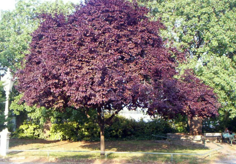 Опис: листопадне дерево малого і середнього розміру, популярне як в саду, так і часто використовується в міських посадках. Висота 5-7 м., діаметр 3-5 м. Швидкість зростання: Швидкоросла. Цвітіння / листя: Квітень-травень. Листки блискучі, еліптичні або довгасті, з відтягнутою верхівкою, гострозубчаті, до 13 см завдовжки; розпускаються рано, інтенсивного темно-пурпурового забарвлення, не вицвітають, нове листя рубінового забарвлення, а восени стає червонувато-фіолетовим. Чашоподібні яскраво-рожеві квіти, поступово червоніють, цвітіння рясне до або разом з розпусканням листя. Плоди: Темно-червоні, круглі, 2-3 см в діаметрі, рясно посипають дерево, їстівні, солодкі і соковиті, і можуть бути використані для отримання консервованих фруктів, дозрівають в серпні-вересні.