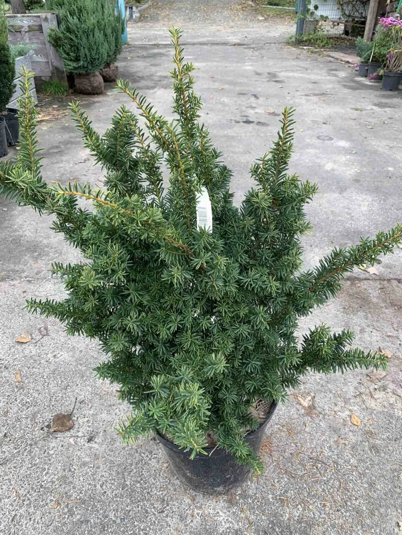 Тис ягідний Саммерголд (Taxus baccata Summergold) Форма: Пагони піднімаються, влітку покриті золотисто-жовтою хвоєю. У молодих дерев гілки відходять від центру майже під прямим кутом і розташовуються горизонтально. Крона формується плоска, розлога, подушковидна. Розмір: медленнорастущих чагарник, у віці 10 років досягає 0,8 м у висоту при 1 м в діаметрі. Хвоя: Довга (до 2,5-3 см), плоска, з загостреним кінчиком, серповидно вигнута, яскраво-зеленого кольору. Умови вирощування: Потребує родючих і вологих ґрунтах. До грунтів невимогливий, добре росте на будь-яких досить зволожених садових грунтах. Сухість грунту переносить погано. Сорт виключно морозостійкий. Використання в дизайні: Рекомендується для одиночних посадок і кольорових композицій.