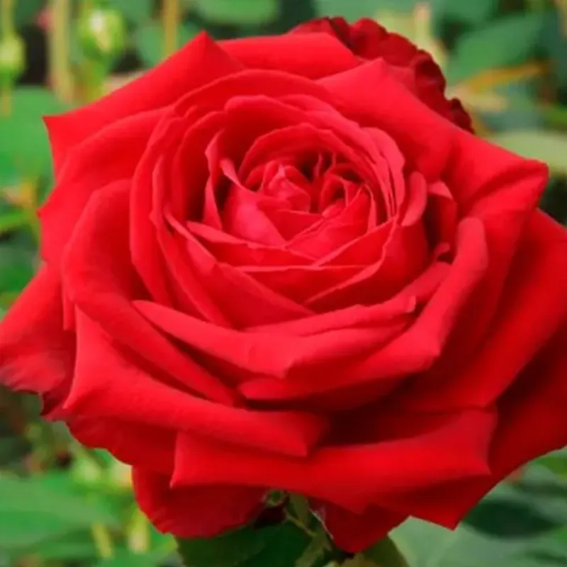 Квітки яскраво-червоні, з темно-малиновим відтінком в центрі і темно-бархатистими краями нижніх, злегка загострених пелюсток, з зворотної сторони світло-малинові, чашевидні, красивої форми, великі (11-12 см), густомахрові (30 - 50 пелюсток), з сильним приємним запахом. В жаркому кліматі краї пелюсток запікаються. Квітки одиночні і в суцвіттях на довгих, потужних, прямих стеблах (до 1,5 м заввишки). Кущі вертикальні, сильні. Листя темно-зелені, яйцевидні, шкірясті, напівглянсові. Шипи великі, середньої густоти. Цвітіння рясне, повторне.