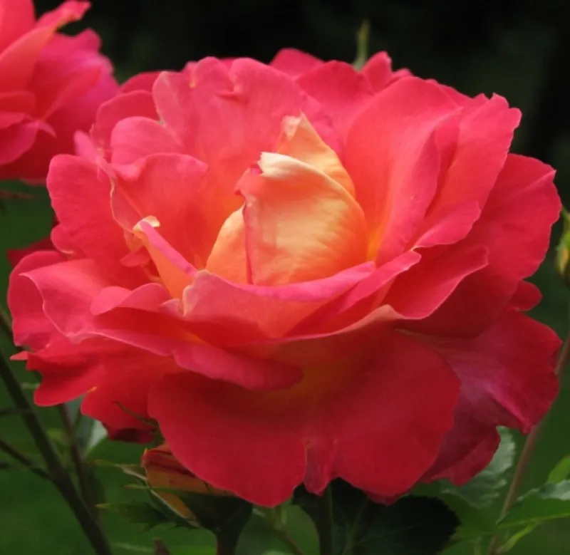 Колір пелюсток із зовнішнього боку - ніжний жовтий, з внутрішнього - насичений малиновий. Крім того, бутони мають велику серцевину жовтого забарвлення. Кущі густо вкриті гладкими листочками, завширшки розростаються до 1 м, заввишки досягають 1,2-2 м. Квітки троянди досягають від 9 до 10 см у діаметрі, розміщуються від однієї до трьох на стеблі. Троянда красиво і густо цвіте кілька разів за сезон, має тонкий, ненав'язливий аромат. Сорт стійкий до хвороб, проте в несприятливі роки вимагає особливої турботи. Троянда Декор Арлекін чудово підійде для створення живоплоту, відмінно виглядає в ізольованих групах і поодиноких посадках.
