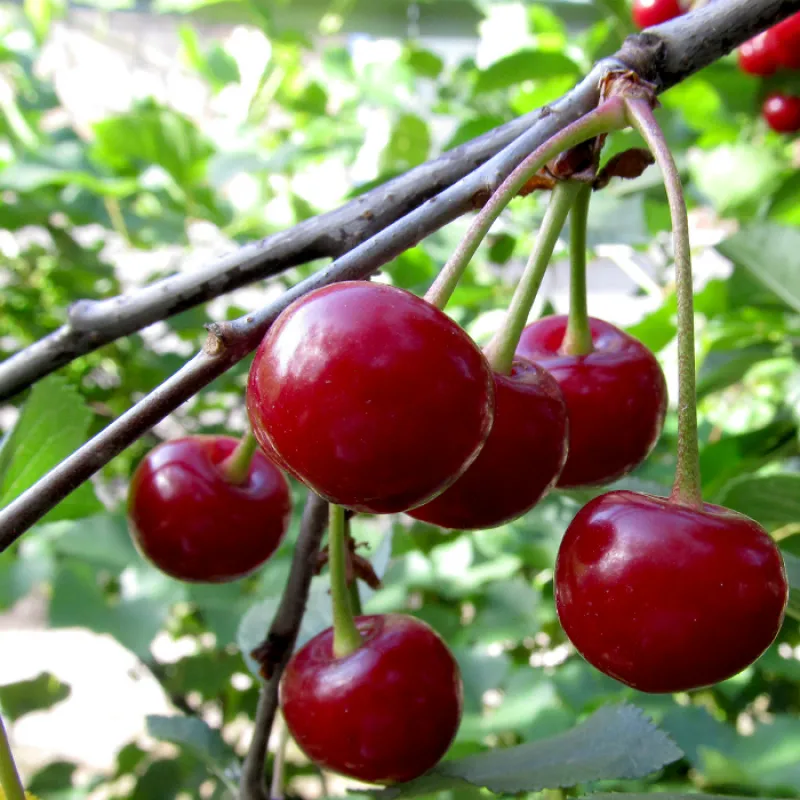 Початок плодоношення: 3-4 рік. Термін дозрівання: початок-середина липня. Опис плода: Плоди зазвичай формуються в суцвітті по 1-2, великі, 22 х 18 х 19 мм, масою до 5 г і більше (частіше 4-5 г), темно-червоні, майже чорні, блискучі, плоско-округлі, з округлої верхівкою і широкої, дрібної лійкою, черевної шов скошений до верхівки. М'якоть темно-червона, зі світлими прожилками, волокністакя, ніжна, кисло-солодкого, дуже гарного, гармонійного, з приємним вишневим ароматом смаку; сік інтенсивно червоний. Урожайність: до 13 кг.