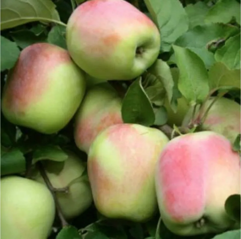 Опис плоду: плоди мають широку овальну форму, яка незначно звужена до колірної чашечки. Поверхня яблук має сильну ребристість. Практично суцільне поверхневе фарбування варіюється від світлого до темного кармінового. Основне забарвлення плодів представлено зеленувато-жовтим кольором. Деякі фрукти мають дрібні підшкірні крапки сіруватого кольору. М'якоть зеленувато-біла з зеленими прожилками, середньої щільності, соковита, дрібнозерниста, в зберіганні стає ніжною, приємно кислувато-солодкою.