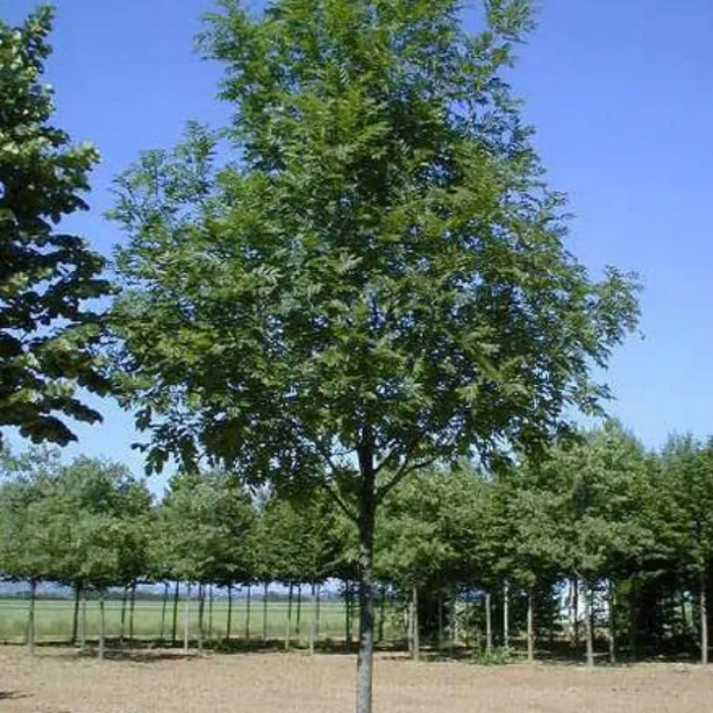 Висота / форма: висота до 35 м. Могутнє дерево з широкояйцеподыбною формою крони. Швидкість зростання: Зростає швидко. Цвітіння / листя: Починає цвісти в квітні місяці. Листки супротивні, непарноперисті, темно-зелені зверху і сизі знизу. Довговічний.